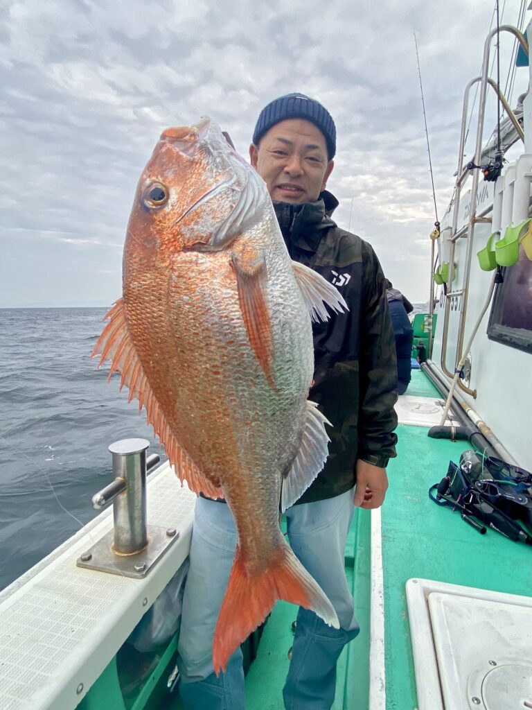 3ノットの流れに苦戦しながらもポツポツとアタリを拾っていき結果は全員安打で船中30枚の釣果となりました。